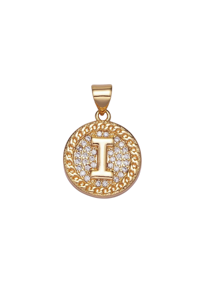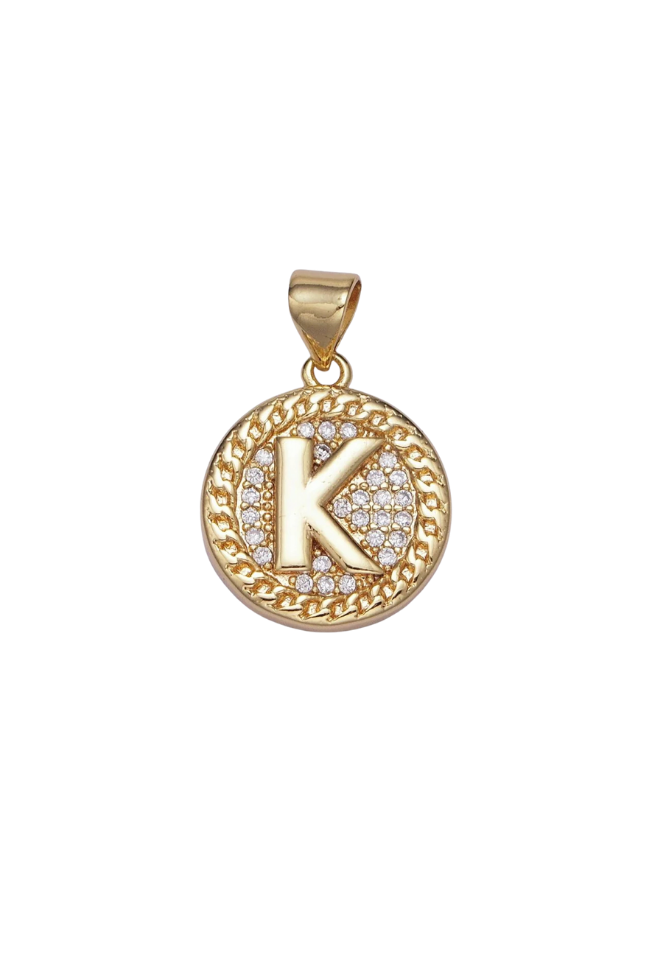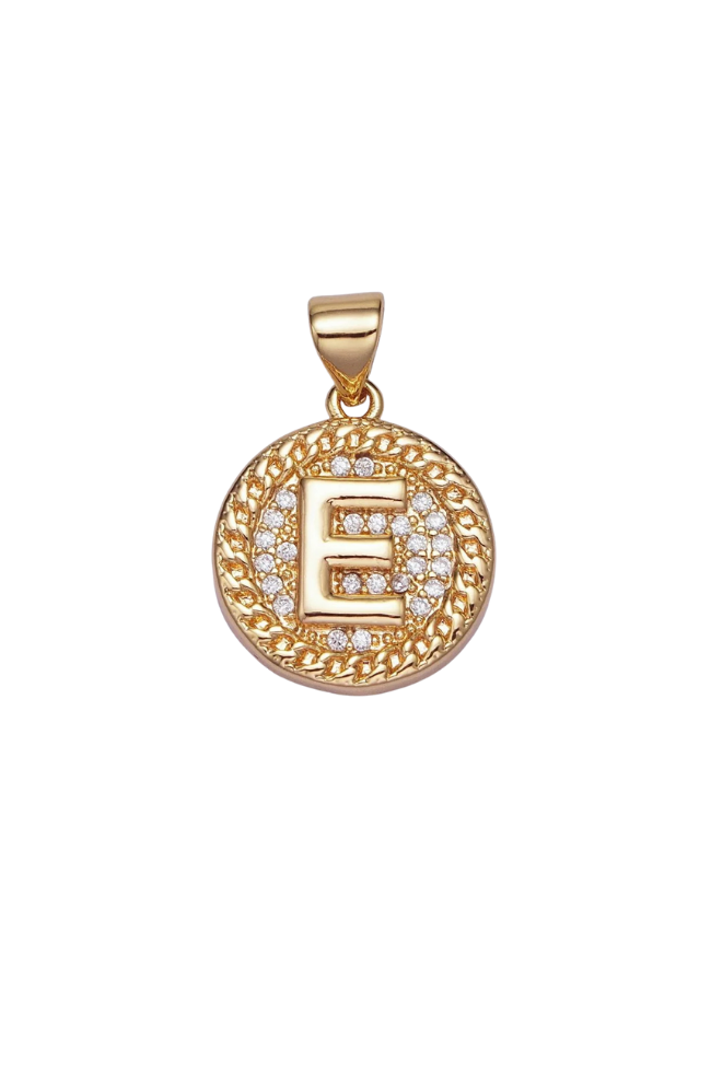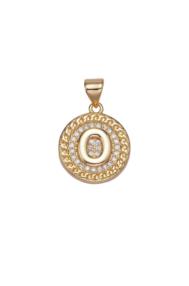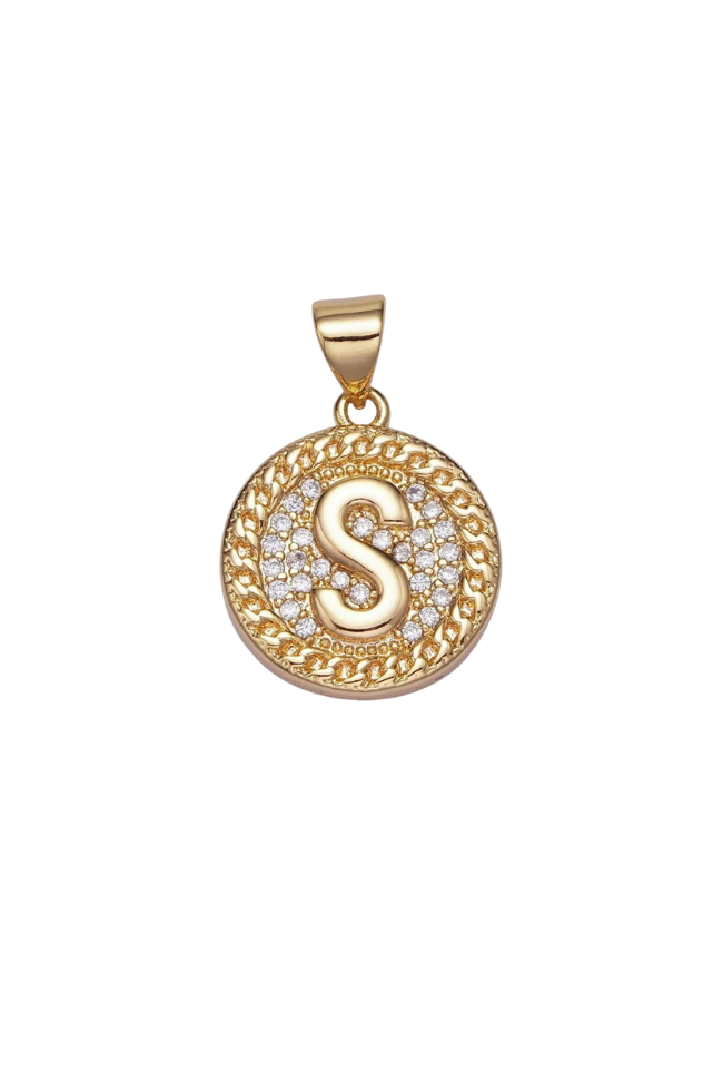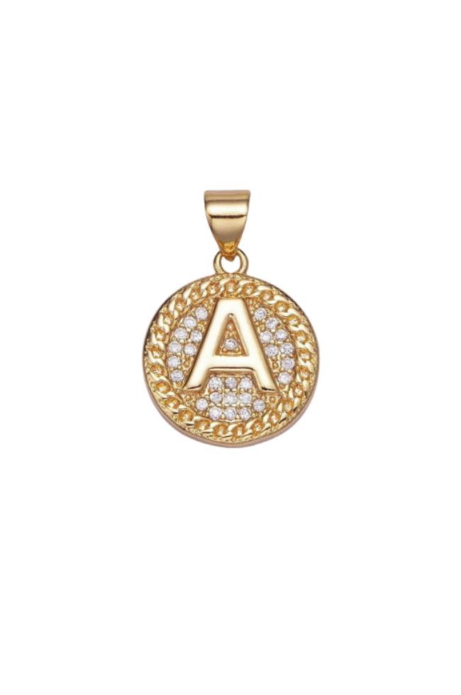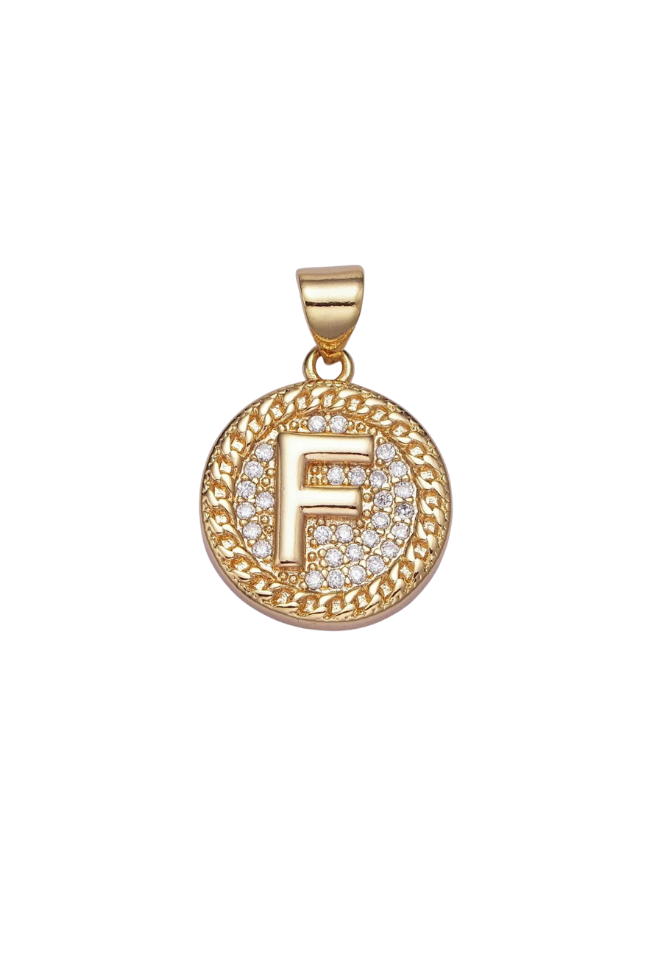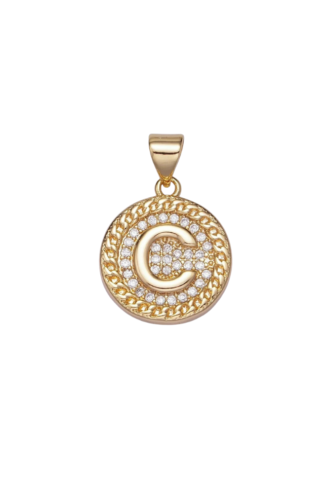 Gold Pave Coin Initial Charm