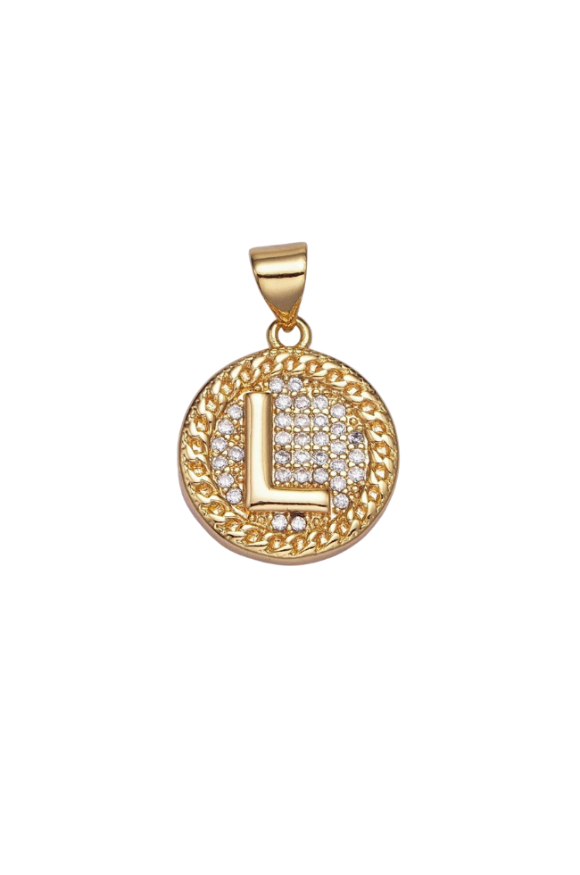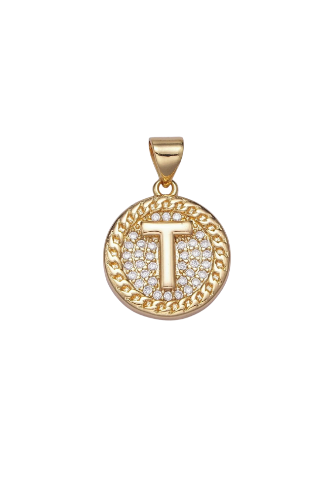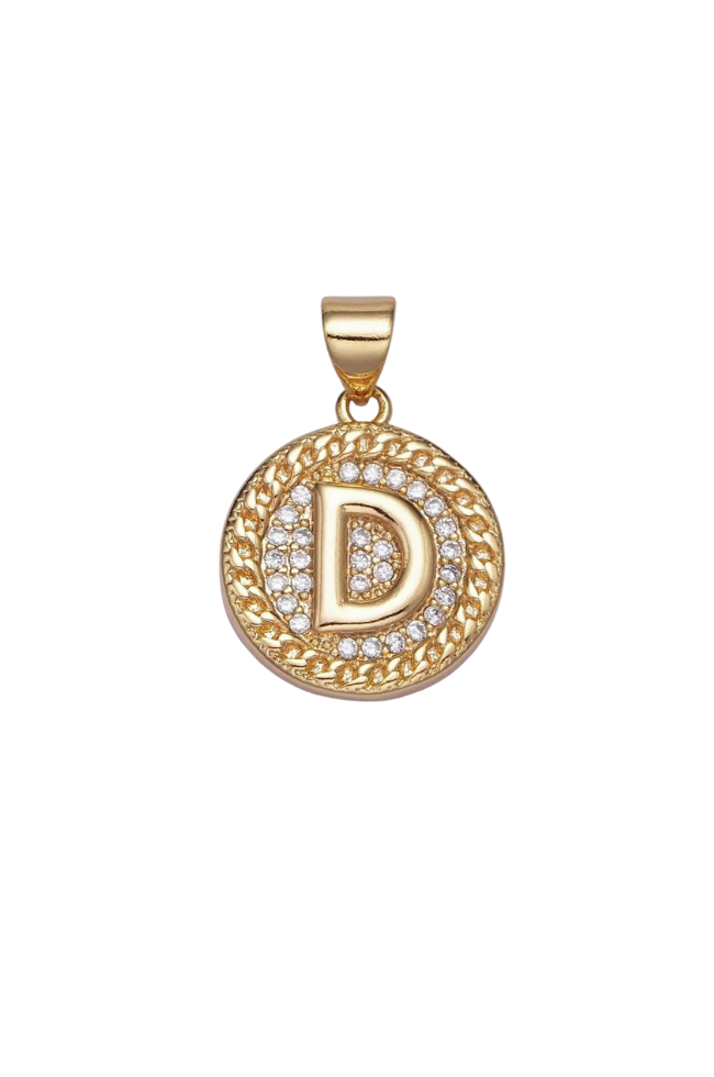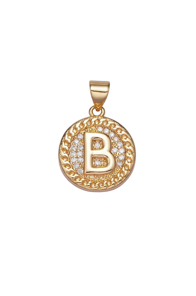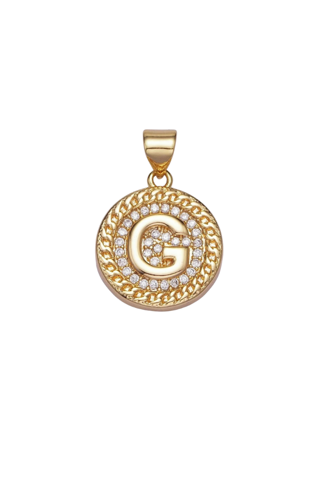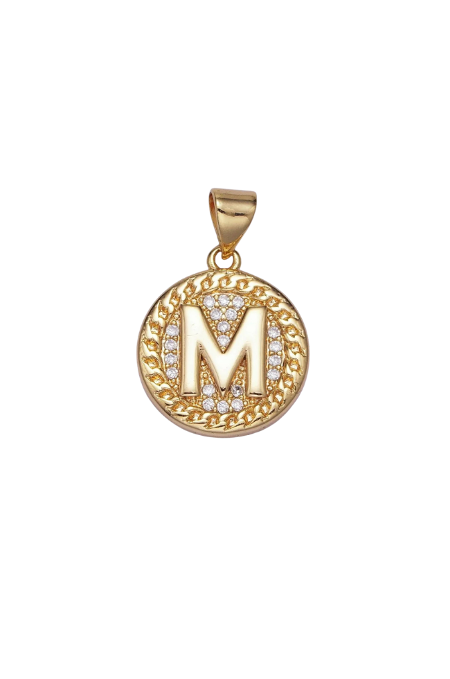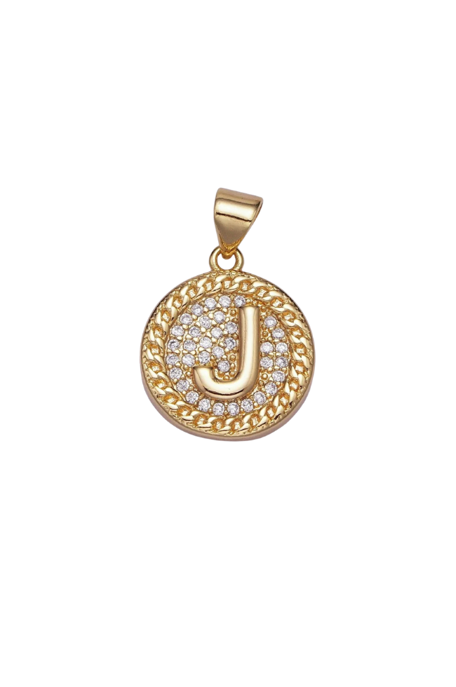 Gold Pave Coin Initial Charm