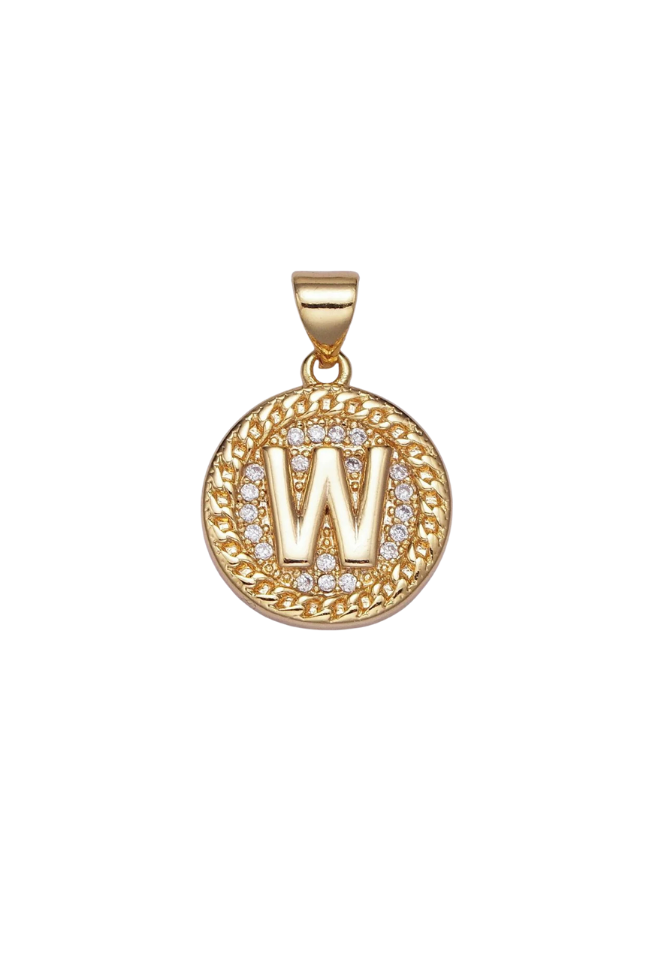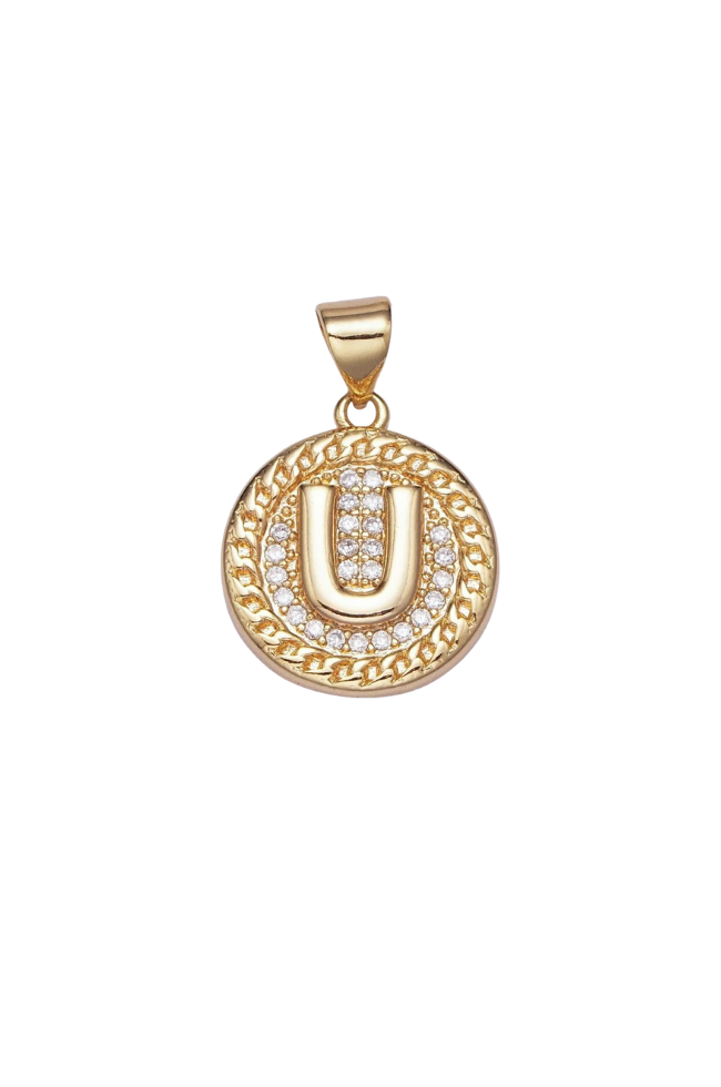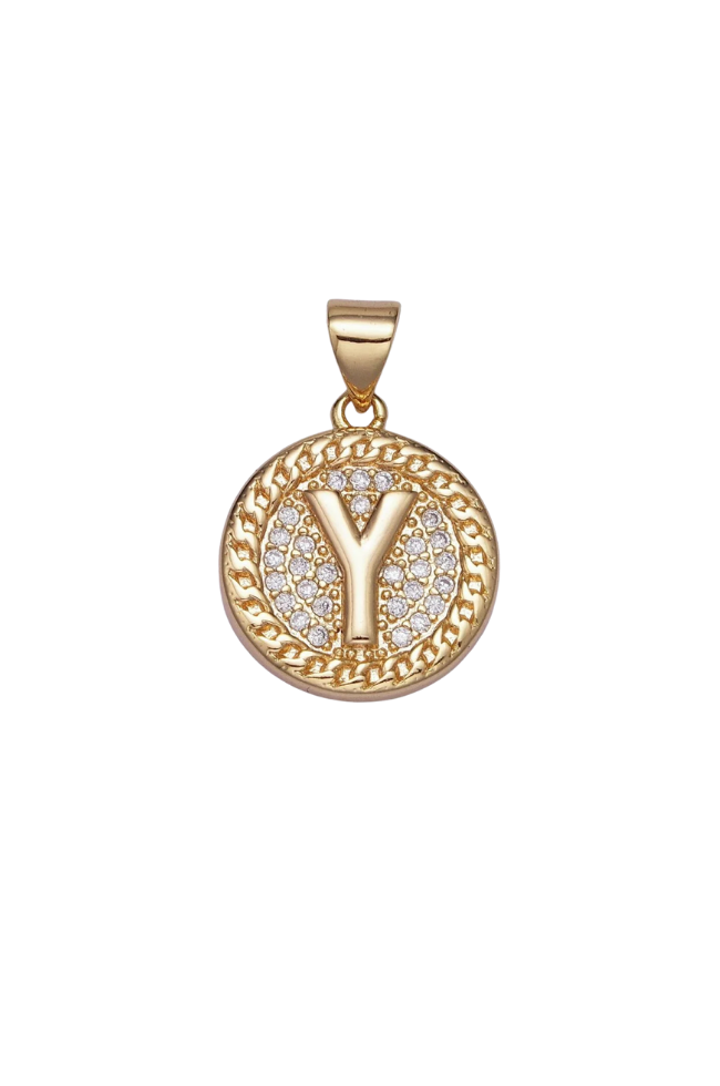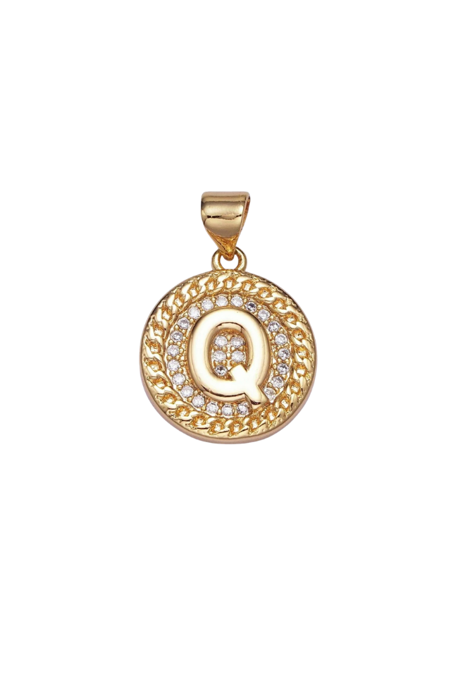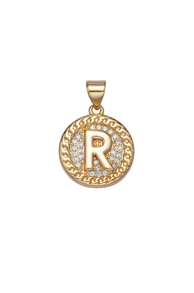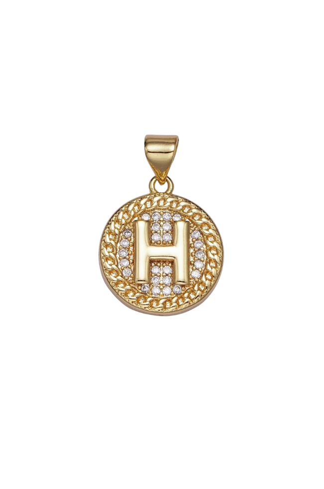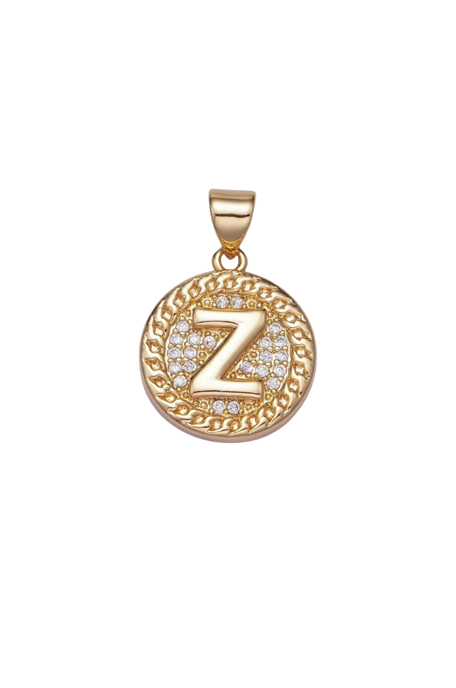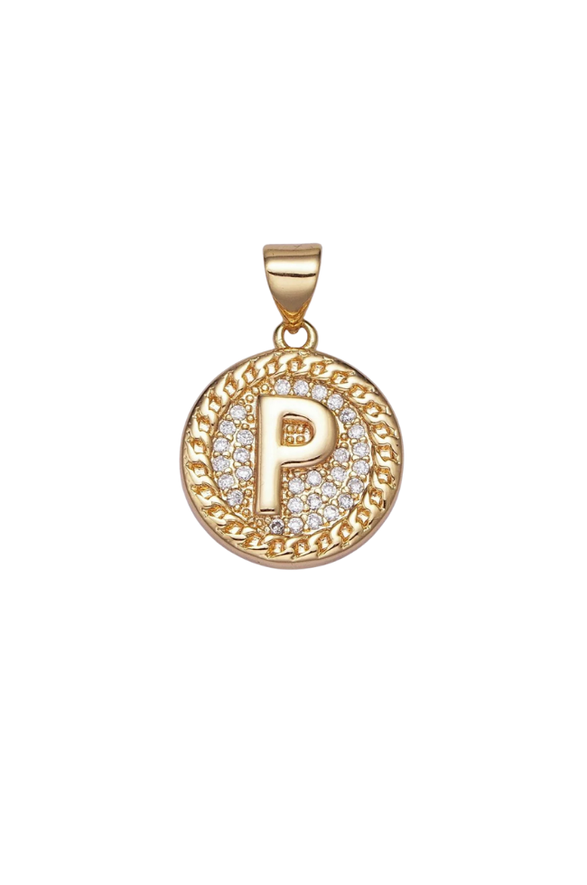 Gold Pave Coin Initial Charm