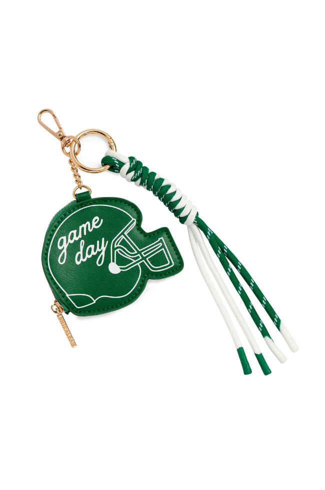 Cheer on your team and stash your cash in this green helmet coin purse bag charm.
