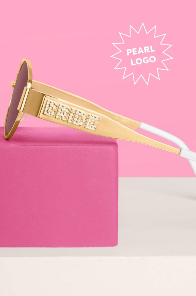 Ditch your plain sunglasses for these gold and pearl encrusted Bride sunnies- you'll want to wear them for all of your wedding festivities!