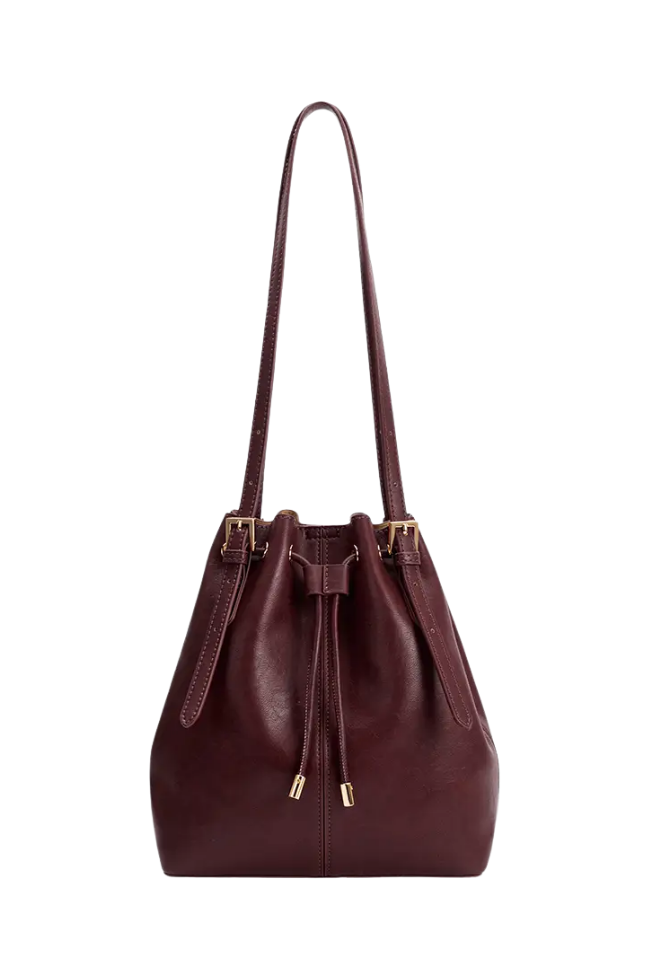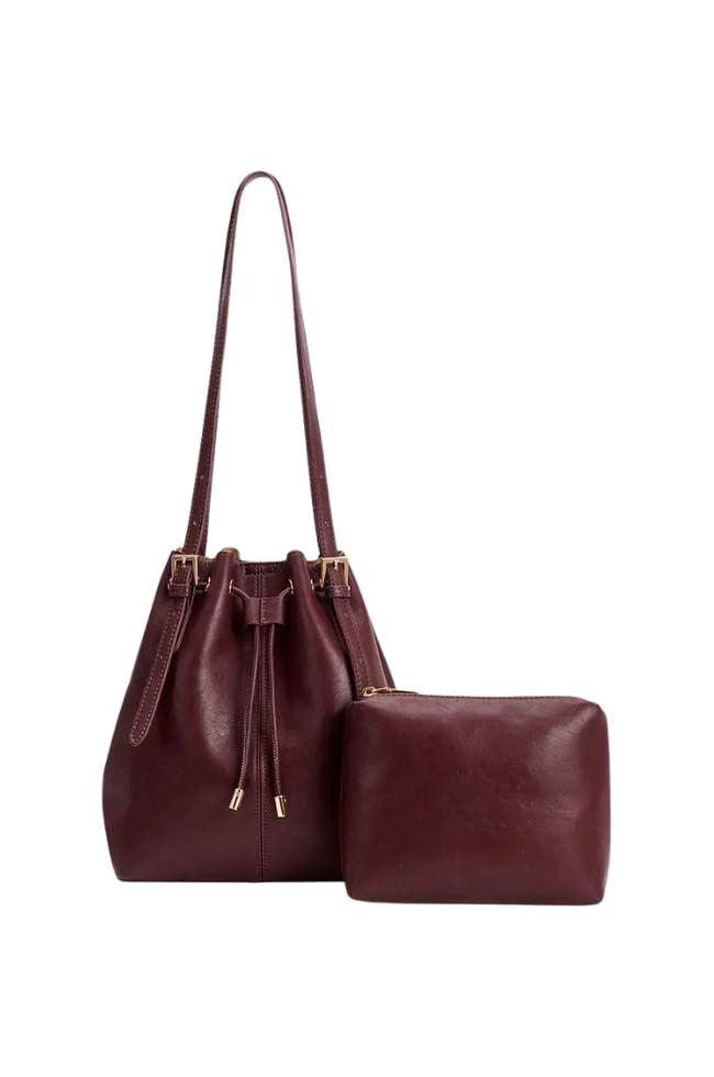 Recycled Vegan Leather; gold-tone hardware and magnetic snap closure.