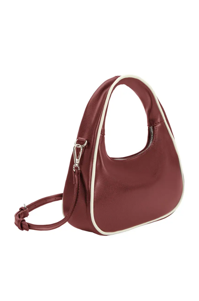 Recycled Vegan Leather; silver-tone hardware and zipper closure.
