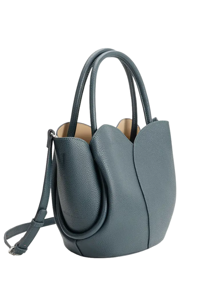 Recycled Vegan Leather; silver-tone hardware and snap hook closure.