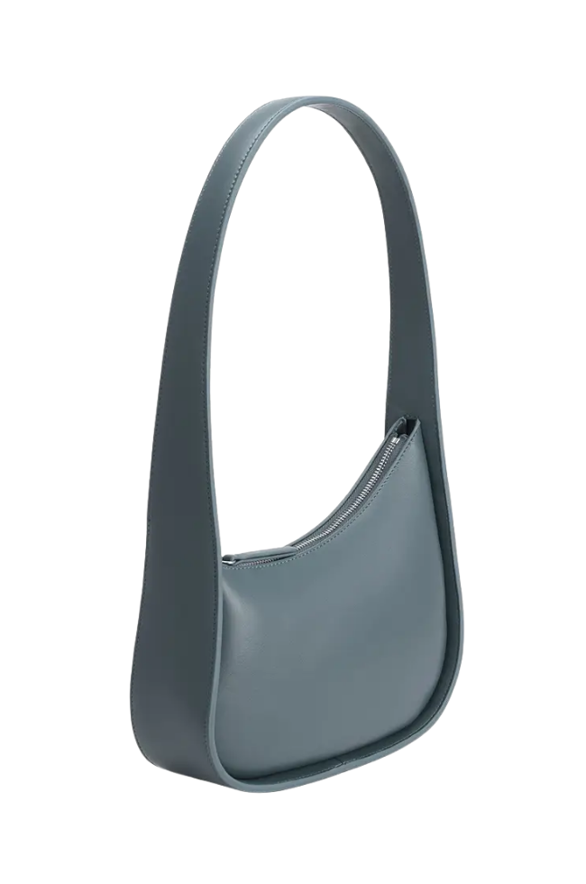 Recycled Vegan Leather; silver-tone hardware and zipper closure.