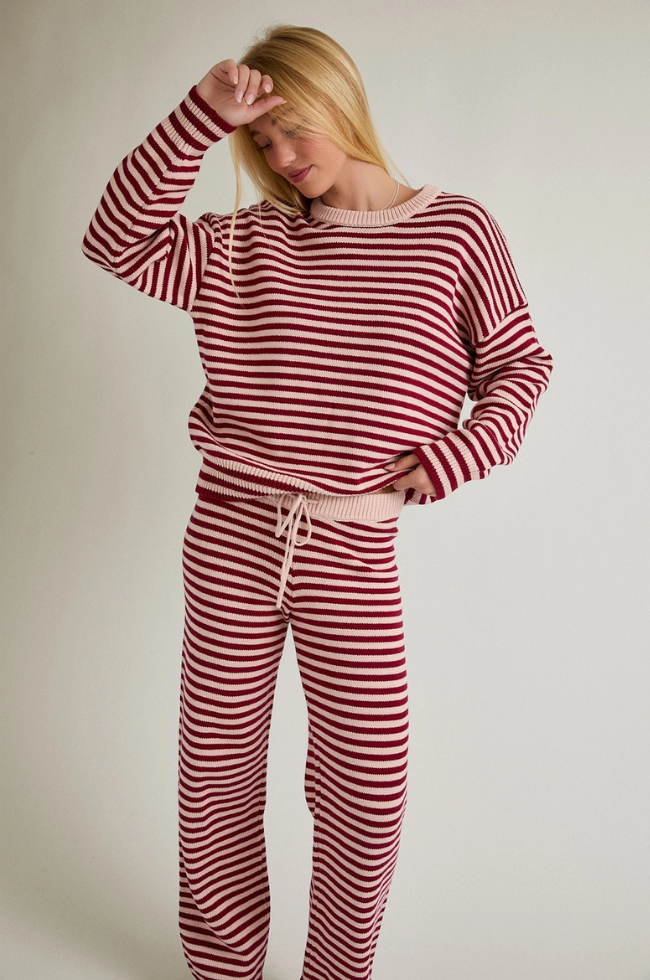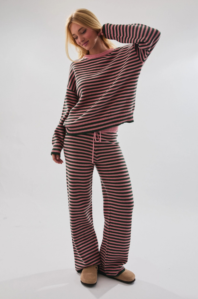 Crew Neck Stripe Sweater Set