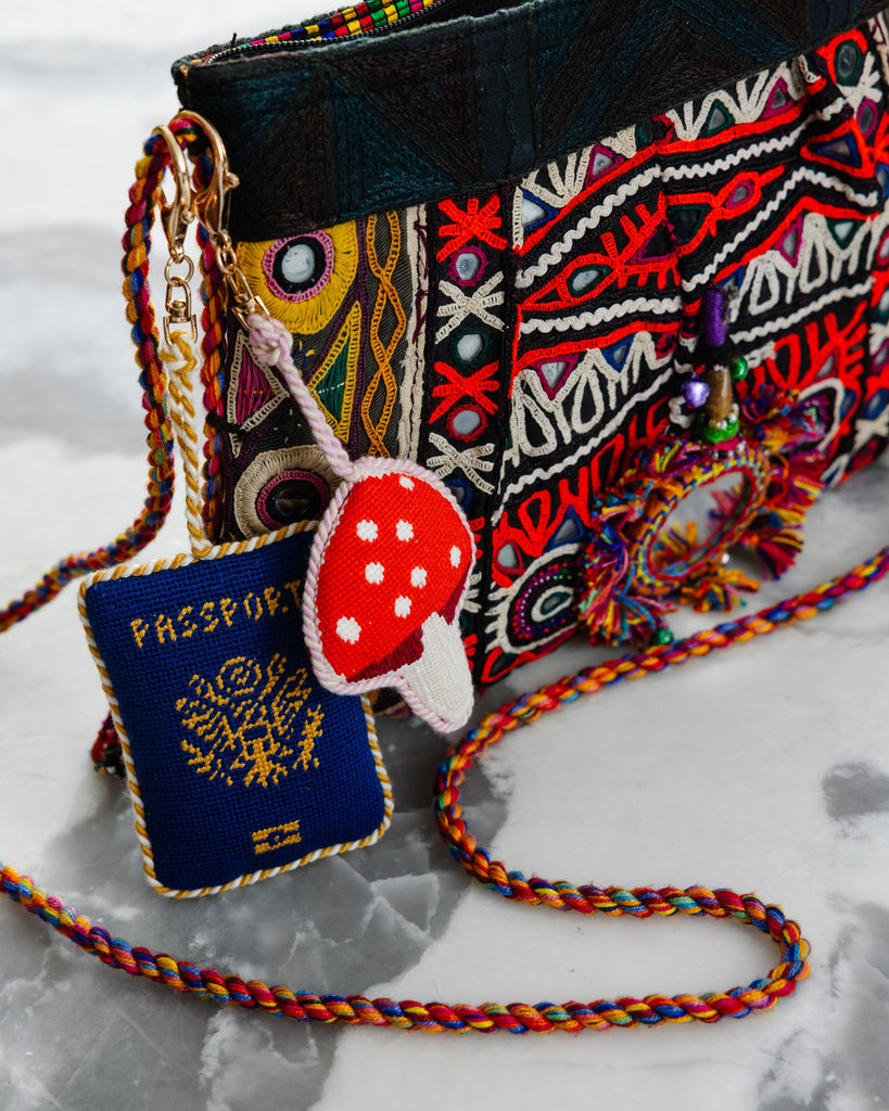 Adventure awaits with this needlepoint passport bag charm. Clip it to keys, totes, or carry-ons for instant “that’s so you.” Don’t stop at one — build your stack.
