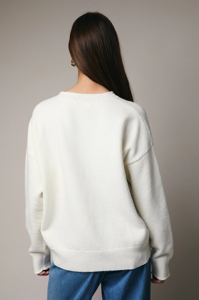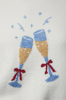 A cozy and festive knit sweater with two champagne flutes on the front.