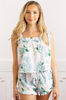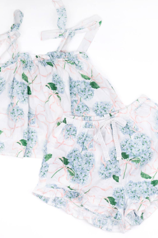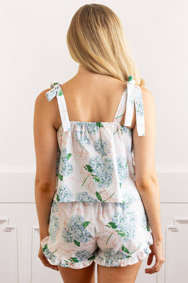 This set features a Tie Top Tank & Drawstring Waist Shorts. 100% Woven Cotton. Machine Wash Cold on the Gentle Cycle, Dry Low. Do Not Iron or Dry Clean. Designed in the USA.