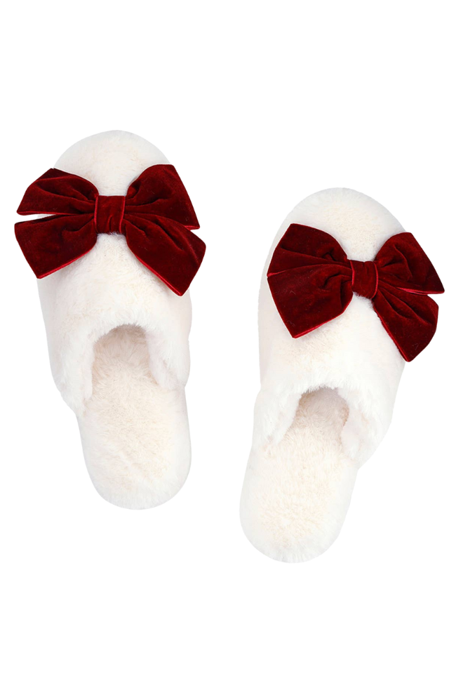 Plush Velvet Bow Slippers