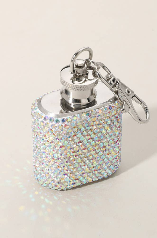 This bedazzled flask is ideal for discreetly carrying your favorite drink. Great for gift-giving, nights out, special occasions, or as a stylish bag charm.