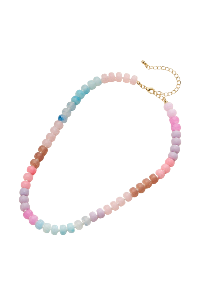 Brighten up your style with this colorful beaded necklace. This is a fun and trendy statement piece perfect for layering or wearing solo.
